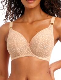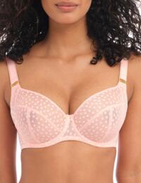 The Freya Starlight side support bra is a must have everyday essential for your lingerie draw. Made from a rich stretch fabric with embroidered spot design and completed with piped elastic, ribbon flashes and press stud trim.