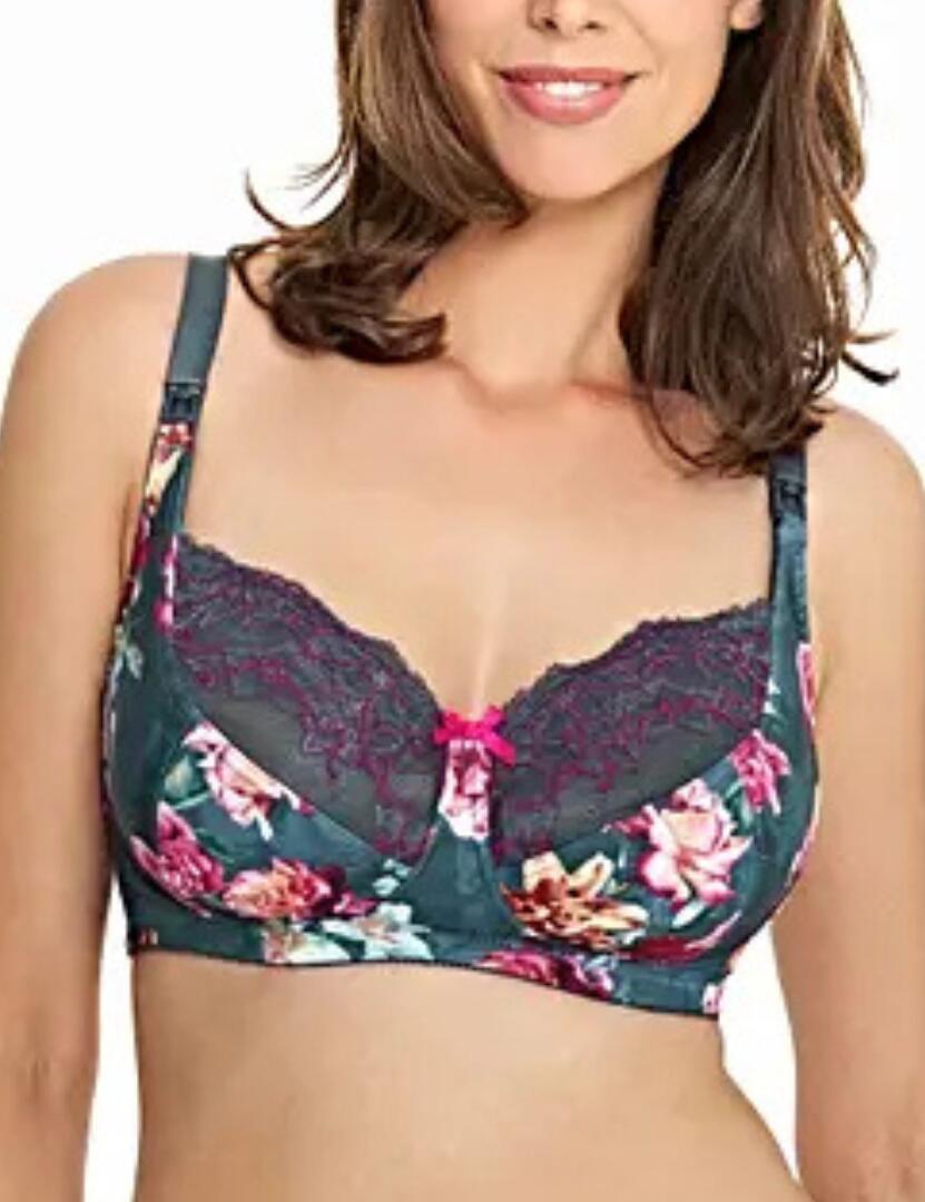 The Florence is a beautiful nursing bra in Cream and a Deep stunning Teal. It is made of laminated strong fabric for extra support. It has a cotton lining for comfort and a pretty eyelash lash trim.